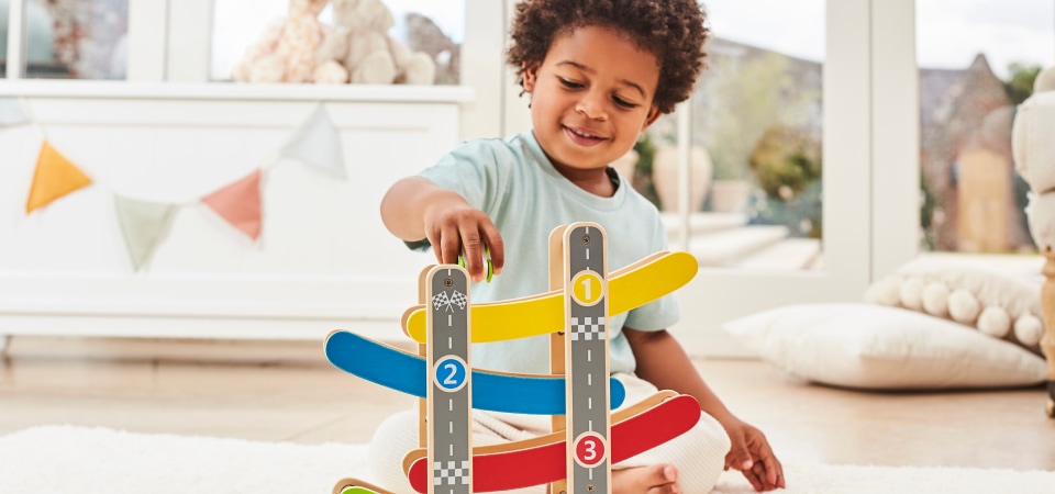 Commencez à construire vos propres circuits de billes avec ce set Quadrilla pour débutants. Déposez deux billes au sommet et observez-les faire la course jusqu'en bas par différents parcours.