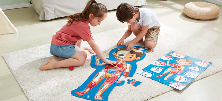 Grâce aux cinq blocs de tailles différentes et aux cinq instruments, les enfants peuvent explorer la musique et les formes tout en empilant les blocs légers et en jouant des instruments.