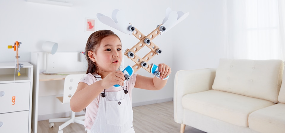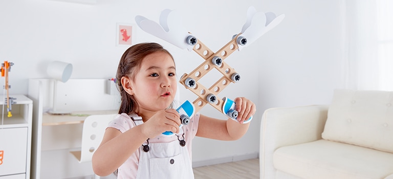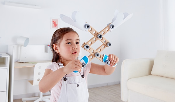 Grâce aux cinq blocs de tailles différentes et aux cinq instruments, les enfants peuvent explorer la musique et les formes tout en empilant les blocs légers et en jouant des instruments.