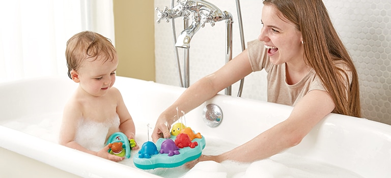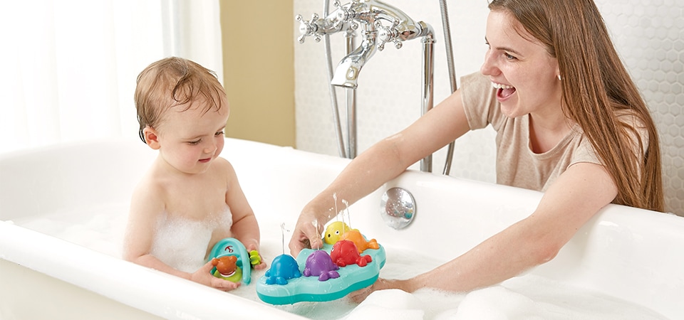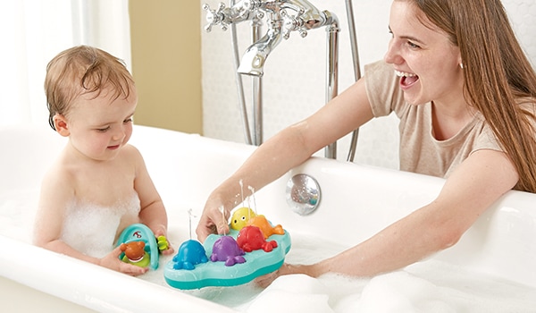 Cette baleine amusante adore souffler des bulles. Remplissez son jet de 3-5 doses de savon ou liquide vaisselle, et plongez-la dans le bain.