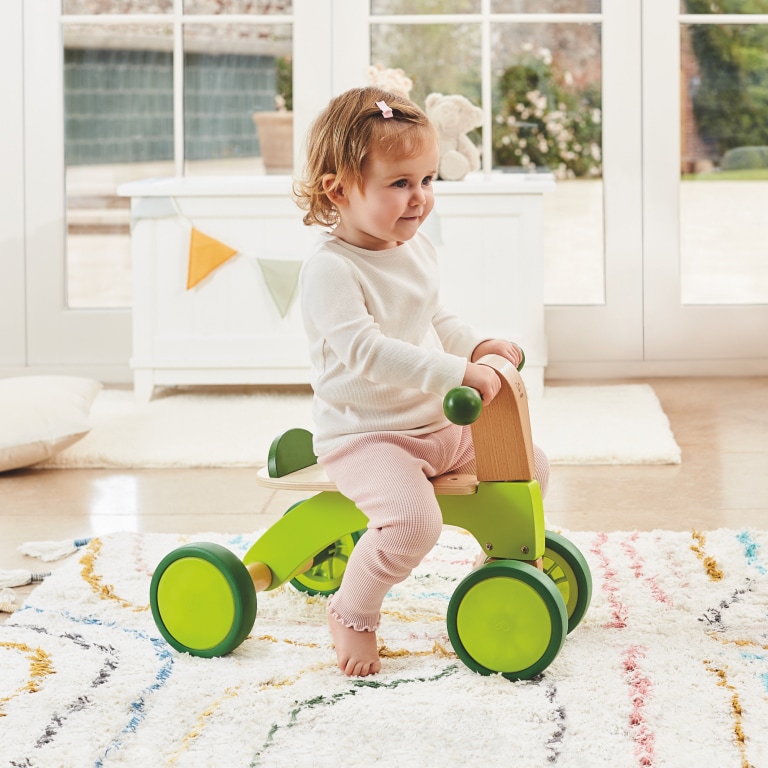 À vos marques, prêts... et c’est parti pour un tour avec ce super porteur à quatre roues. Ce jouet est idéal pour la découverte de la mobilité tout en développant d’importantes habiletés motrices et la coordination. Adapté aux plus petits, n’hésitez pas à l’offrir dès le premier anniversaire de votre enfant. Tour de salon aujourd’hui. Tour de France demain.