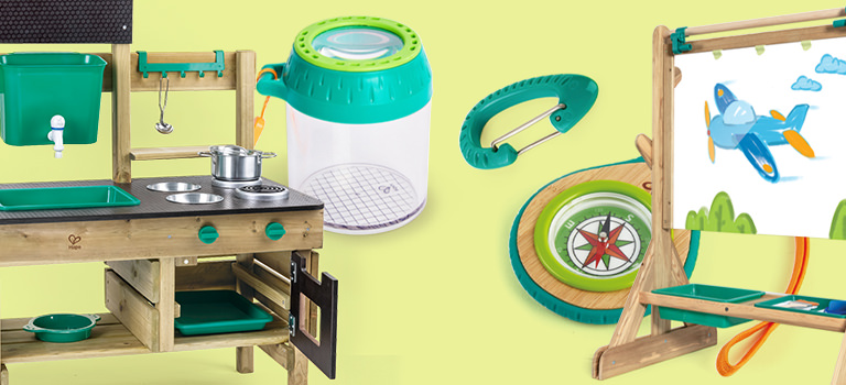 Idéale pour les beaux jours et les jeux d’eau, cette cuisine d’extérieur est entièrement équipée : réservoir d’eau, robinet, évier, cuisinière, four et accessoires fournissent l’essentiel pour concocter d’excellents petits plats ! Et si les enfants préfèrent jardiner, ils pourront cultiver leurs petites herbes aromatiques dans les pots de fleurs suspendus.
