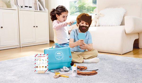 Avec des outils réalistes comme une tondeuse électrique avec effets sonores, une paire de ciseaux et des cheveux en feutrine, ce kit du petit barbier inspire la créativité et le jeu d'imitation. Parfait pour développer la motricité fine, la confiance en soi et l'interaction, tout en faisant d'une coupe de barbe ou de cheveux une expérience amusante.